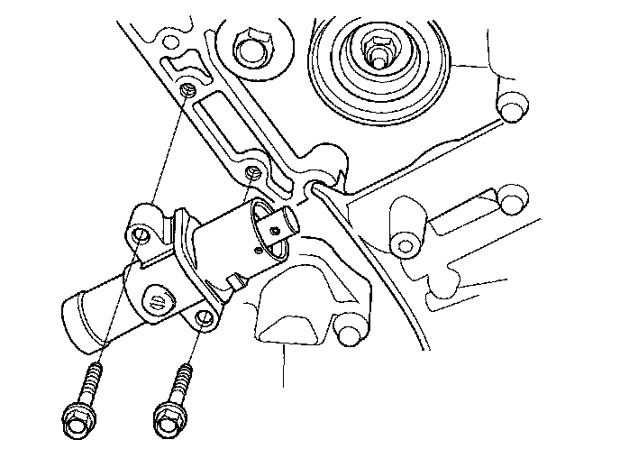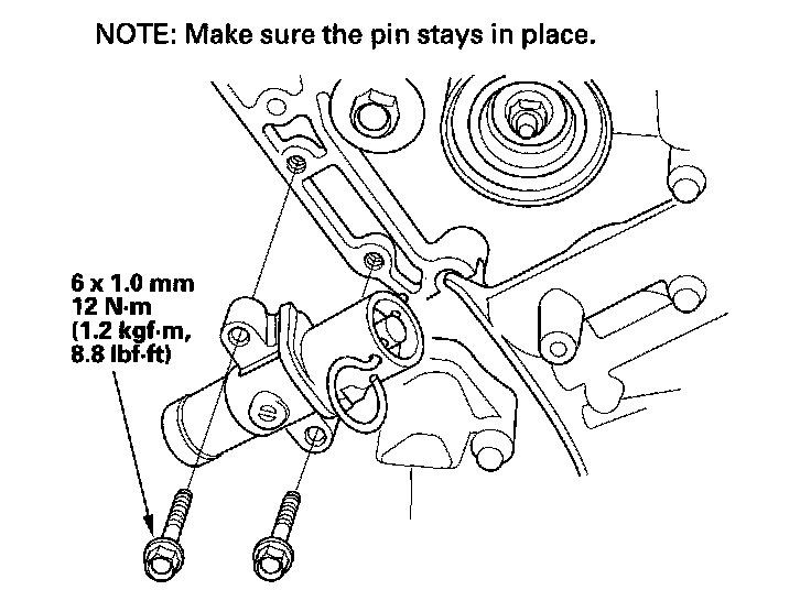 10. Thread the battery clamp bolt in as shown to hold the timing belt adjuster. Tighten it by hand, do not use a wrench.