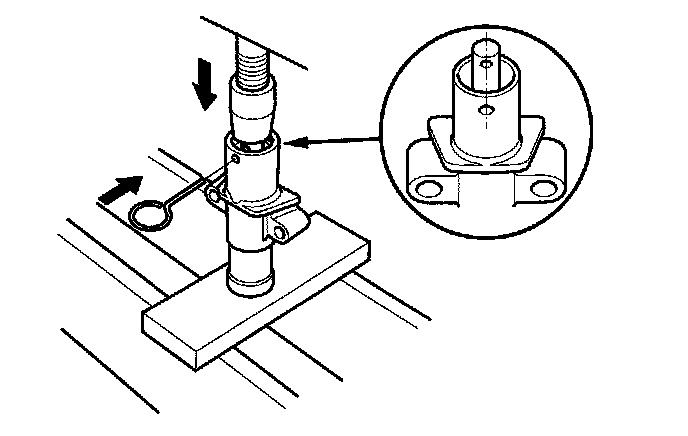 8. Use a hydraulic press to slowly compress the auto-tensioner. Insert a 2.0 mm (0.08 in.) pin through the housing and the rod.