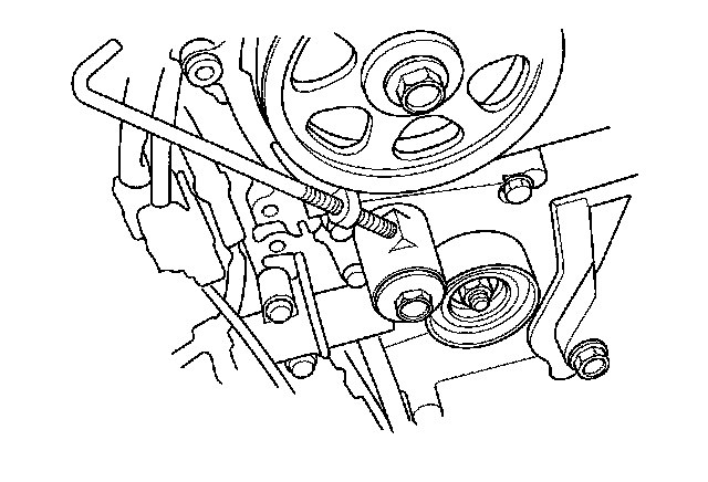 11. Loosely install the idler pulley with a new idler pulley bolt so the pulley can move but does not come off.