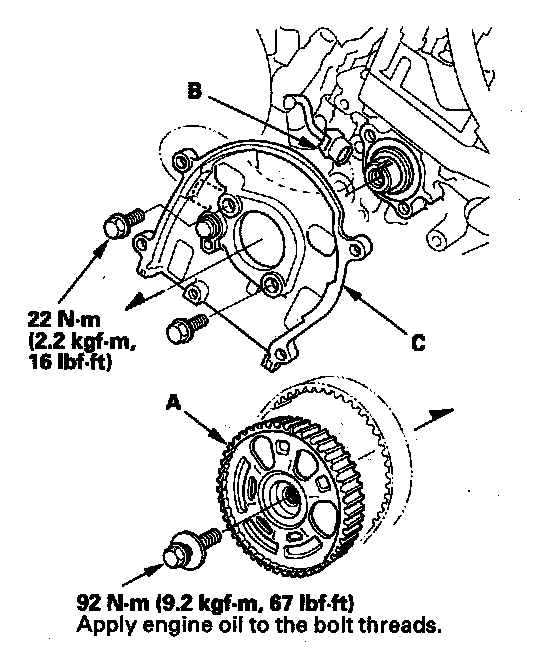 3. Disconnect the CMP sensor connector (B), then remove the back cover (C).
