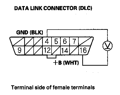 24. Measure the voltage between DLC terminal No. 16 and body ground.