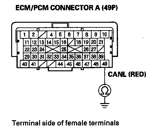 33. Check for continuity between ECM/PCM connector terminal A49 and body ground.