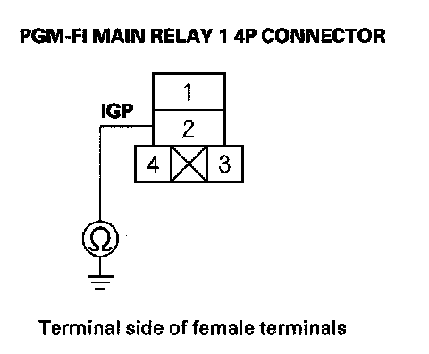 43. Check for continuity between PGM-FI main relay 1 4P connector terminal No. 2 and body ground.
