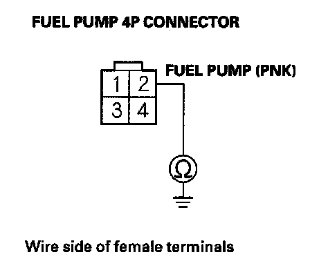 54. Check for continuity between fuel pump 4P connector terminal No. 2 and body ground.