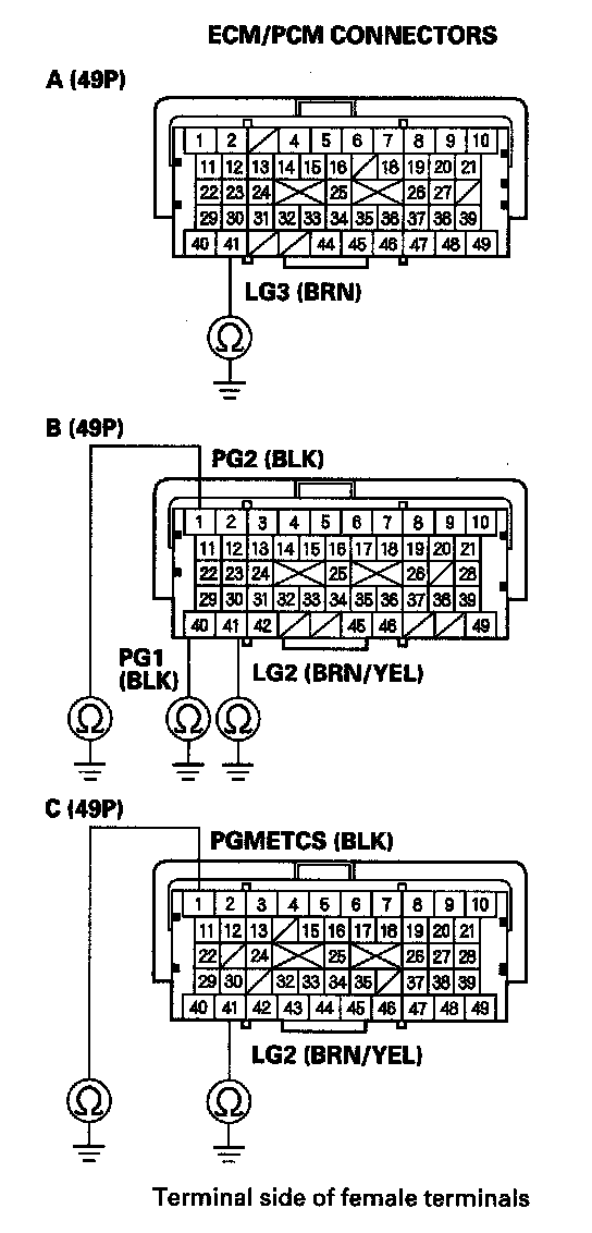 70. Disconnect ECM/PCM connector A (49P), B (49P), and C (49P).