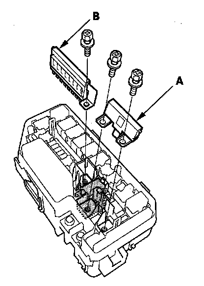 3. Remove the under-hood fuse/relay box (C) from the bracket.