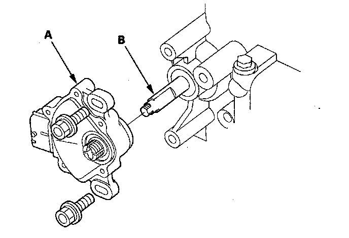 13. Install the transmission range switch (A) gently over the control shaft (B), and install the bolts loosely.