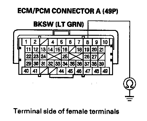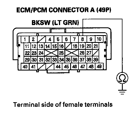 8. Check for continuity between ECM/PCM connector terminal A8 and body ground.