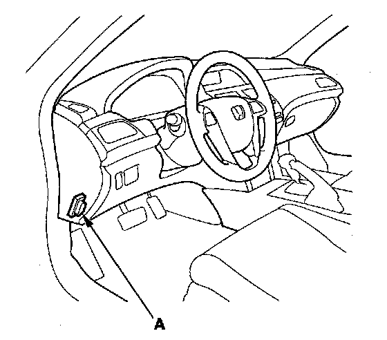 2. If the MIL stays on, connect the HDS to the data link connector (DLC) (A) located under the driver's side of the dashboard.