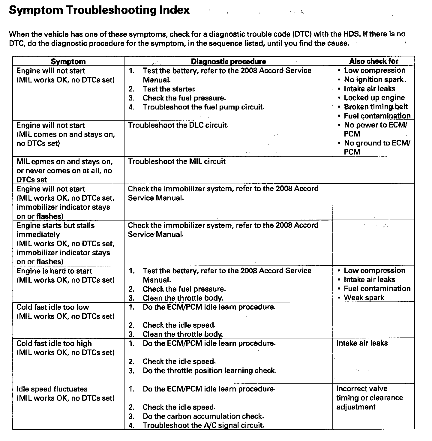 Symptom Troubleshooting Index (Part 1):
