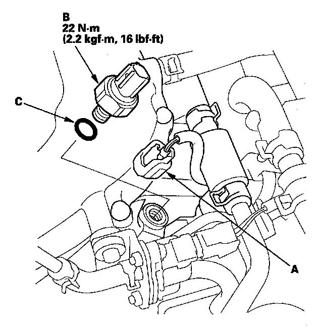 3. Install the parts in the reverse order of removal with a new O-ring (C).