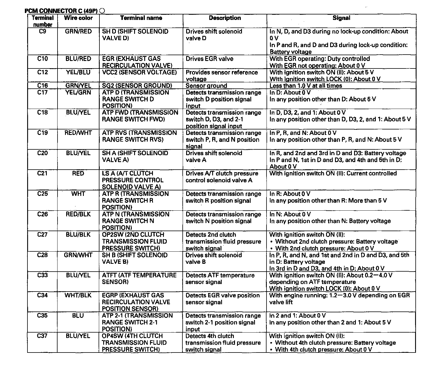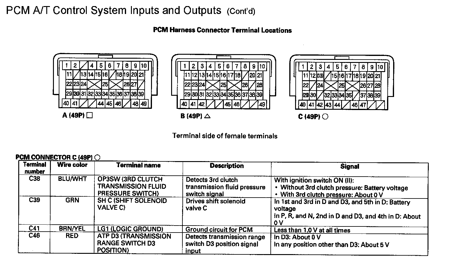 PCM A/T Control System Inputs and Outputs (Part 3):
