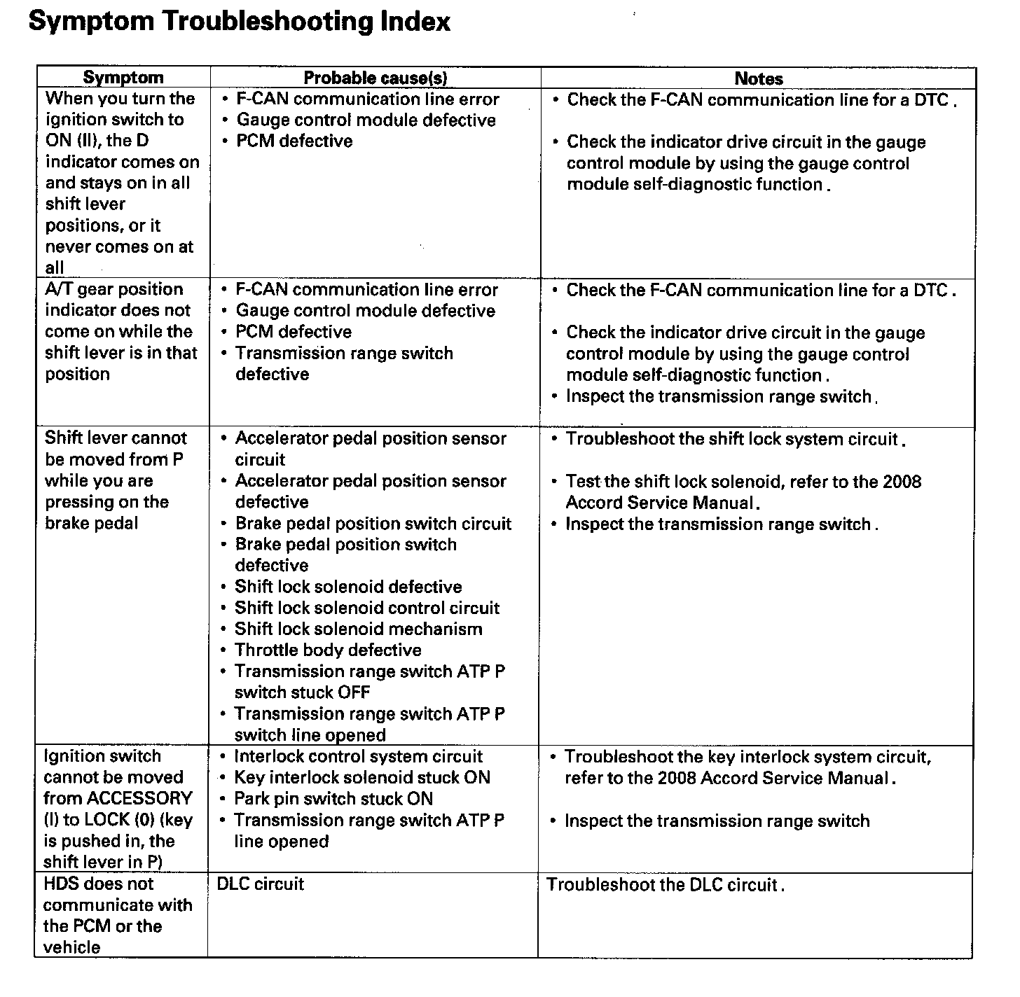 Symptom Troubleshooting Index