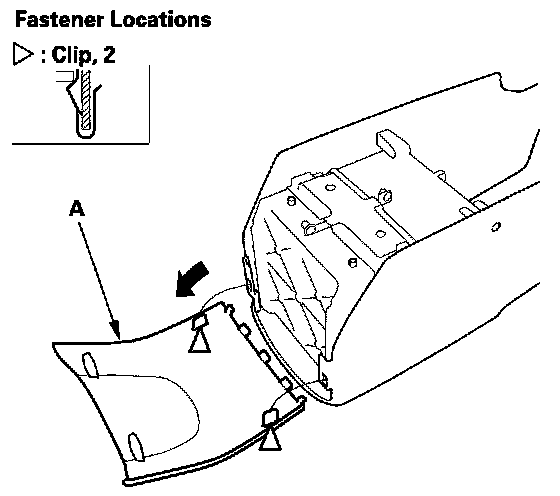 6. Gently pull out the center console rear cover (A) to detach the clips.