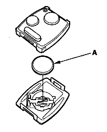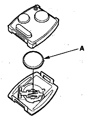 4. Replace the transmitter battery (A) with a new one, and try to lock and unlock the doors with the transmitter by pressing the lock or unlock button five or six times.