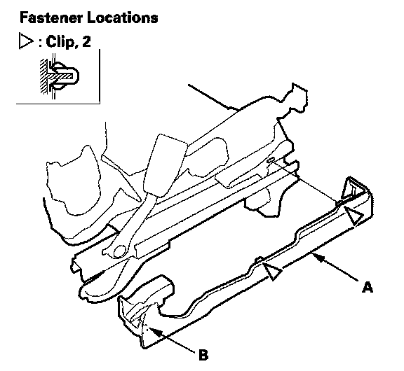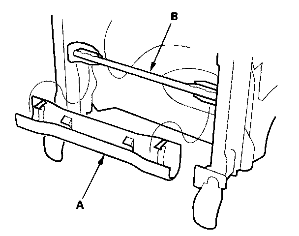 9. If necessary, remove the member cover (A) from the front cushion rear member (B).