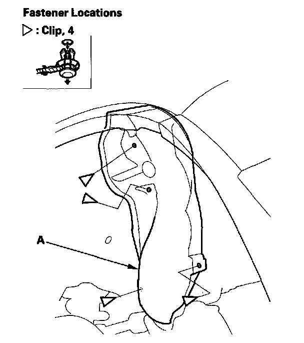 2. Remove the clips, then remove the fuel pips protector (A). Take care not to scratch the body.