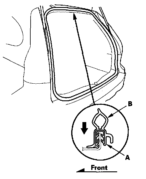 Tailgate Weatherstrip Replacement1. Remove the tailgate weatherstrip (A) by pulling out on it.