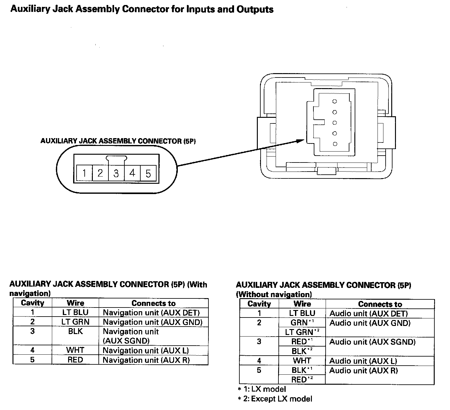 Auxiliary Jack Assembly Connector For Inputs And Outputs: