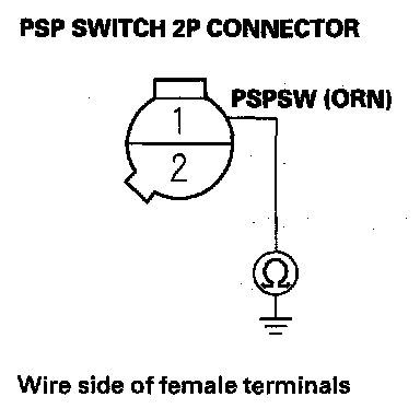 13. Check for continuity between PSP switch 2P connector terminal No. 1 and body ground.