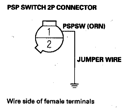 19. Remove the jumper wire from the PSP switch 2P connector.