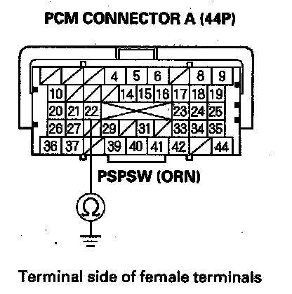24. Check for continuity between PSP switch 2P connector terminal No. 2 and body ground.