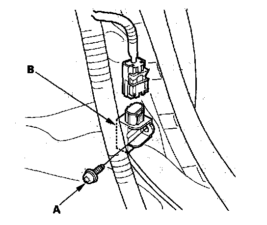 1. Install the new side impact sensor (second) with the TORX bolt (A), then connect floor wire harness 2P connector (B) to the side impact sensor (second).