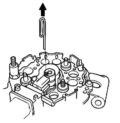 19. Push the brushes (A) in, then insert a pin or drill bit (B) (about 1.6 mm (0.06 in.) diameter) to hold them there.