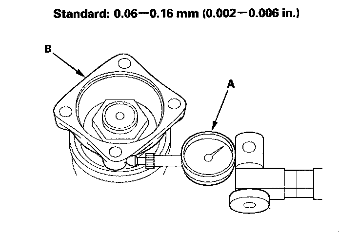 5. Set a dial indicator (A) on the transfer companion flange (B), and measure the transfer gear backlash.