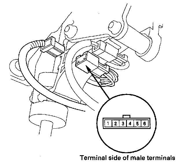 4. Shift out of P, and check for continuity between connector terminals No. 1 and No. 2.