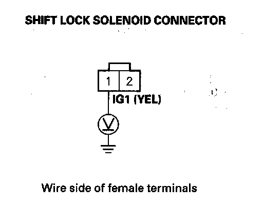 6. Measure the voltage between shift lock solenoid connector terminal No. 1 and body ground.