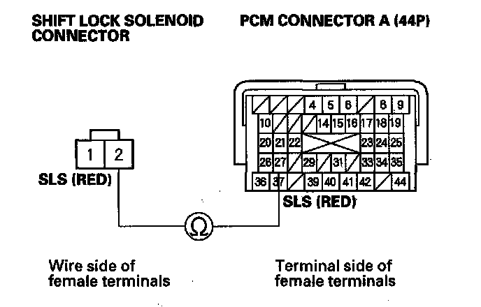2. Select Shift Lock Solenoid Test in the Miscellaneous Test Menu, and check that the shift lock solenoid operates with the HDS.