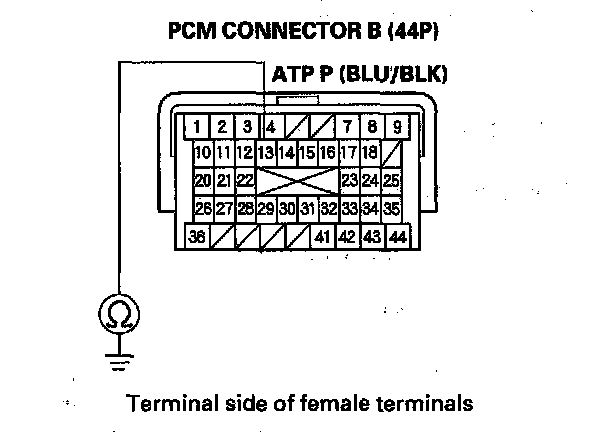 26. Check for continuity between PCM connector terminal B13 and body ground.