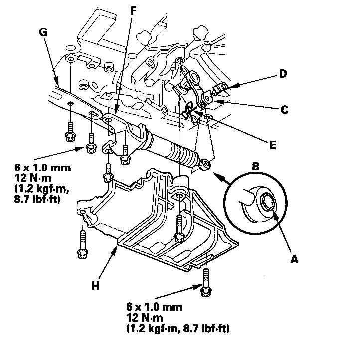 16. Install the shift cable cover (H).