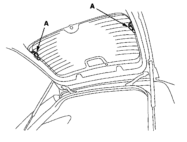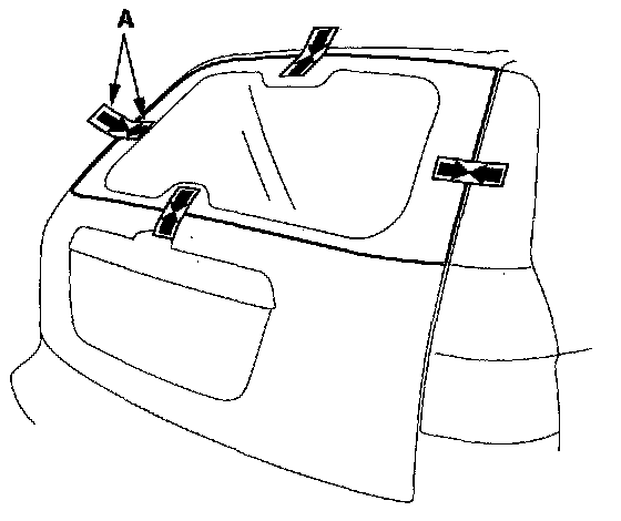 4. If the old rear window is to be reinstalled, make alignment marks (A) across the glass and body with a grease pencil.
