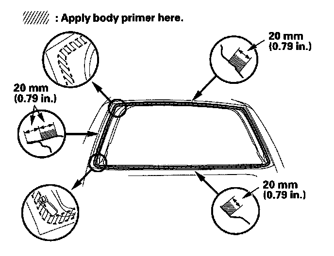 - Never touch the primed surfaces with your hands. If you do, the adhesive may not bond to the rear window properly, causing a leak after the rear window is installed.