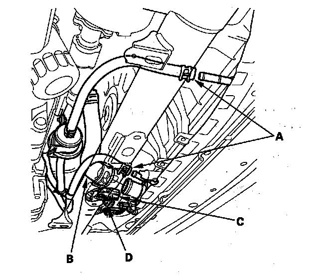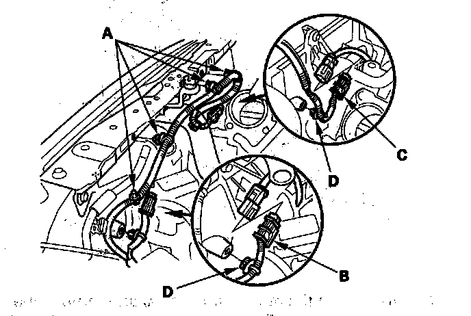 18. Disconnect the engine coolant temperature (ECT) sensor 2 connector (C), then remove the clamp (D).