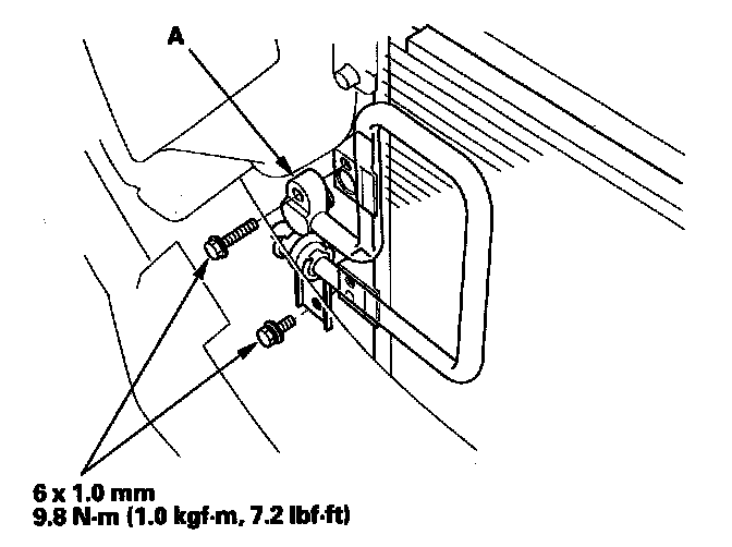4. Remove the bolt, then disconnect the receiver line (A) from the A/C condenser.