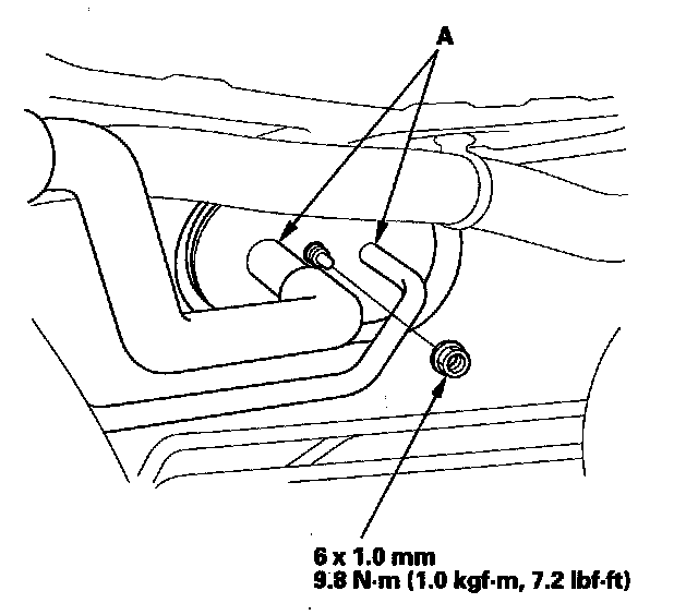 3. Remove the nut, then disconnect the A/C lines (A) from the evaporator core.