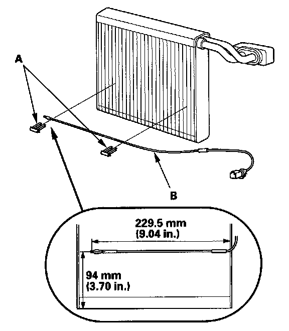 8. Remove the clips (A) and the evaporator temperature sensor (B).
