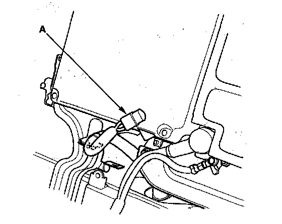 5. Disconnect the A/C compressor power cable connector (A) from the A/C compressor driver, then wrap the cable end with insulating tape.