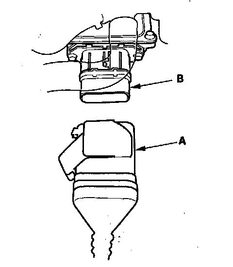 11. Disconnect the motor power cable connector (A) from the motor stator (B).