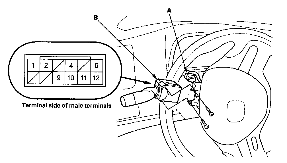 3. Disconnect the 12P connector (A) from the combination light switch (B).