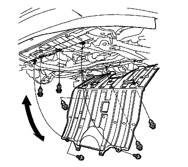 2. Remove the five clips and the two bolts securing the engine undercover, then open the engine undercover.