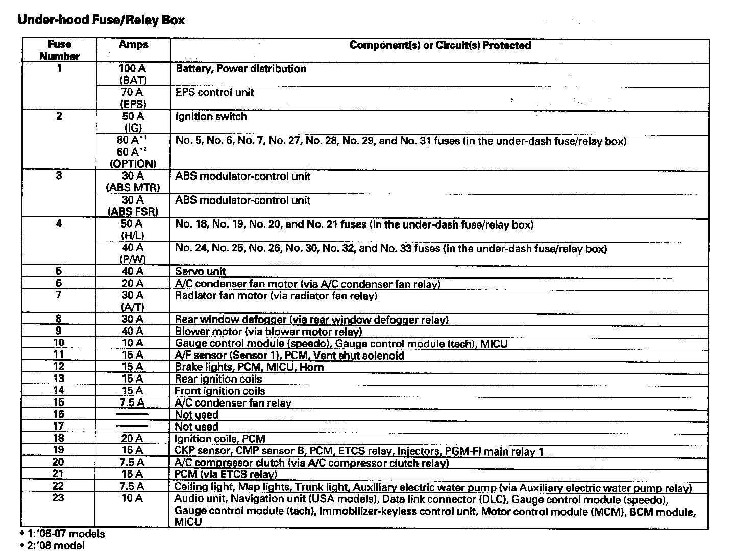 Under-hood Fuse/Relay Box (Part 1):