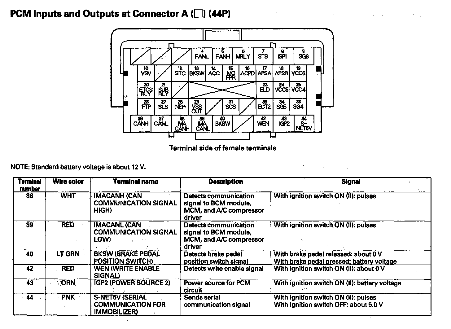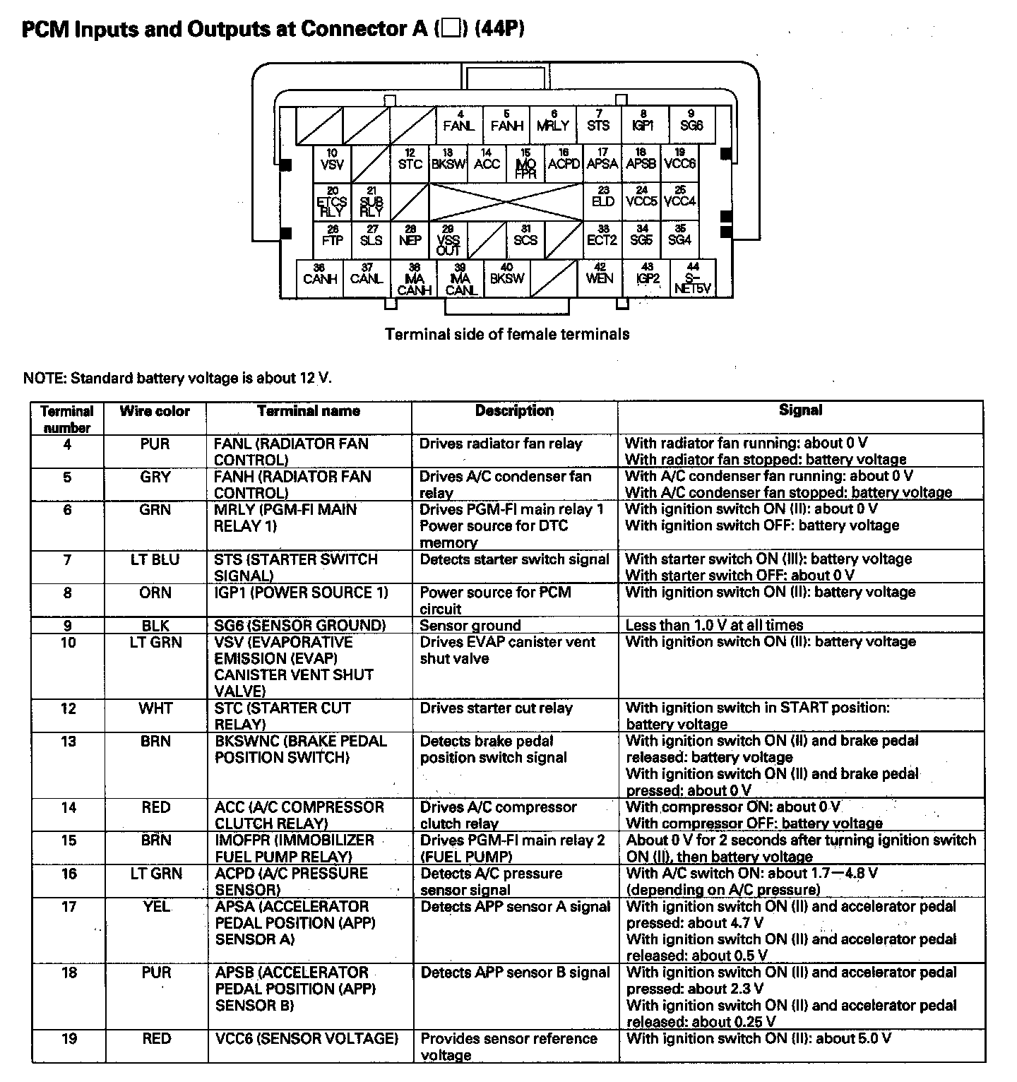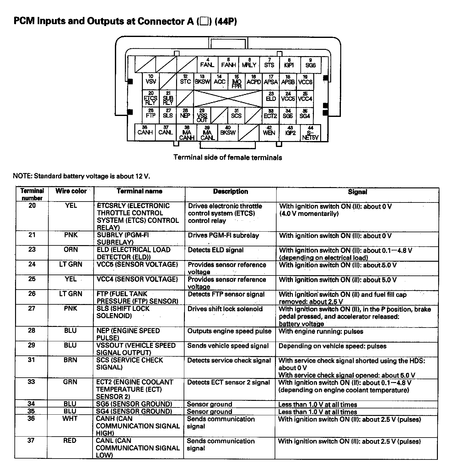 PCM Inputs And Outputs At Connector A (44P) Part 4: