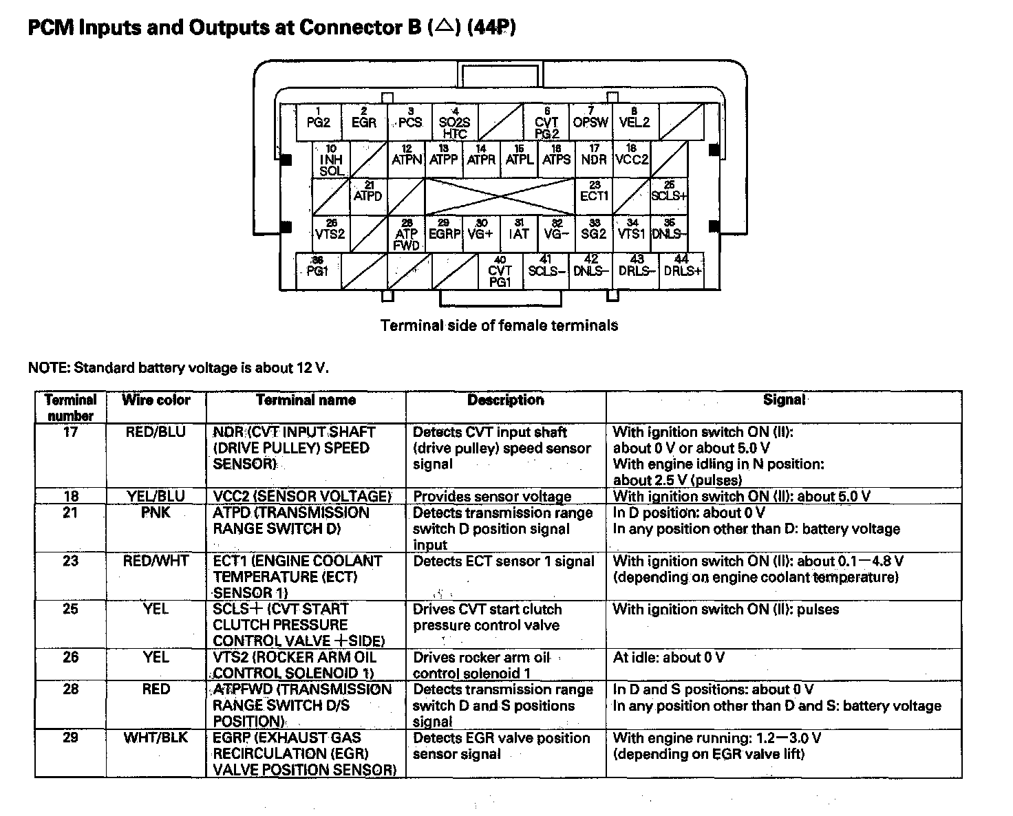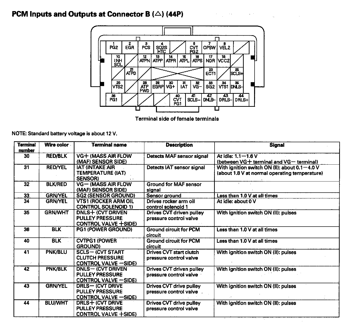 PCM Inputs And Outputs At Connector B (44P) Part 1: