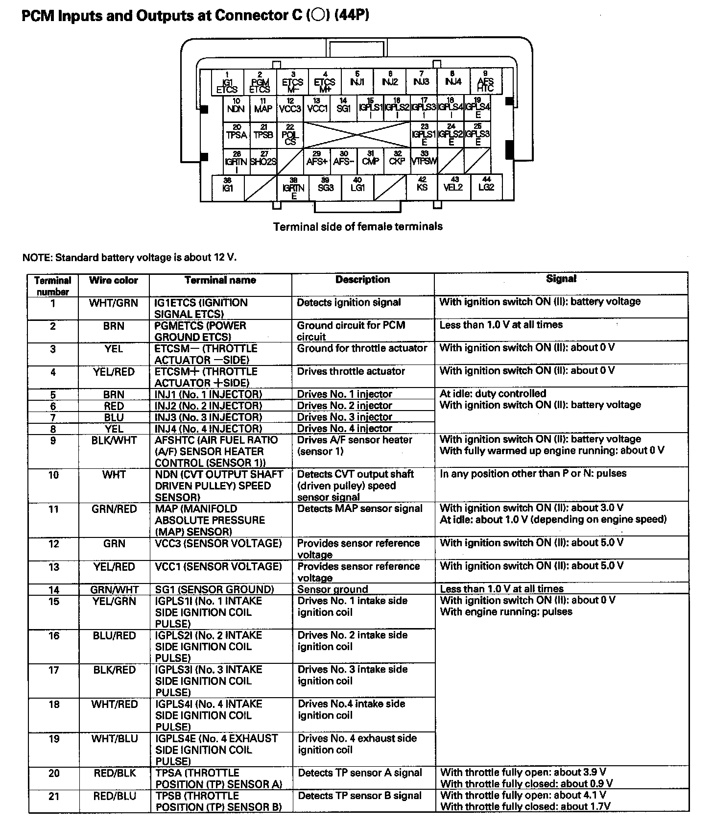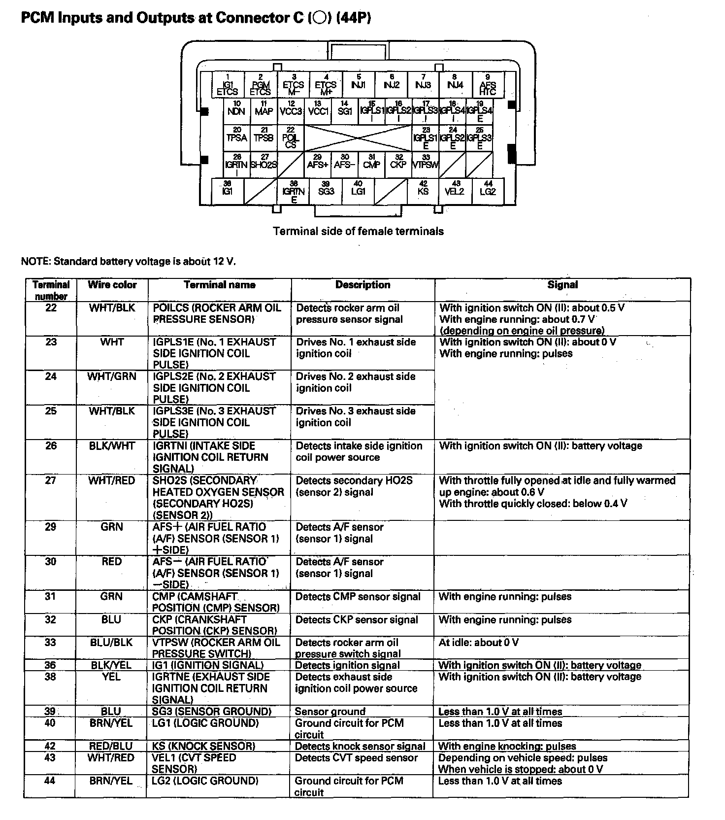 PCM Inputs And Outputs At Connector C (44P) Part 1: