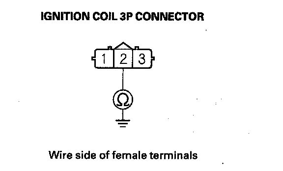 6. Check for continuity between each ignition coil 3P connector terminal No. 2 and body ground.