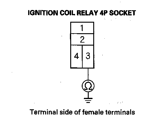 12. Check for continuity between ignition coil relay 4P socket terminal No. 3 and body ground.